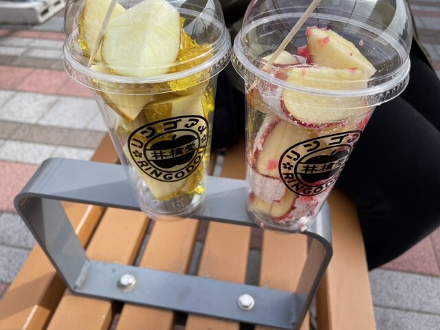 写真はきいろとヨーグルトのカップを注文。りんごがみずみずしく、とても美味しかったです。