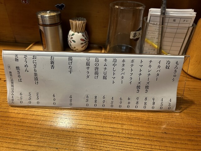 他に冷奴、牛ホルモン煮込み、アジフライ、