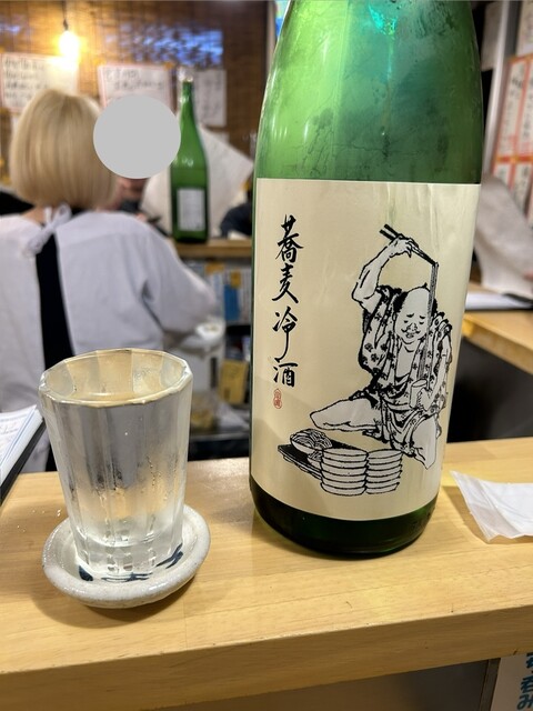 店内にはお客様が7人ほど、立ち席には余裕があったので、奥に入りメニューを見る。日本酒の顔ぶれが前回来た時と全く違って面白い!すでに呑んできたので、スッキリ冷たいのが呑みたくて、福井の「福千歳 蕎麦冷酒」¥690を頼む。キレのある辛口の日本酒で、お酒で火照った体を冷ましてくれる。