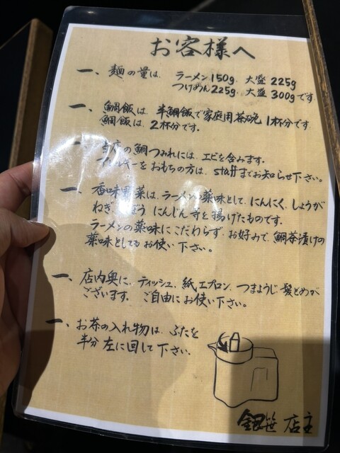 そもそもこのラーメンの器、他のお店では見たことがないほどに異質!写真で見て左側に注ぎ口のような物がついています、そしてその左には半鯛飯、食にこだわりのある人ならもうわかるでしょう!このスープを使って鯛飯茶漬け、もとい鯛飯スープ漬けを作り、堪能します!!そしてこれが美味いのなんの!!これほど風情のあるラーメン店には入ったことがありません!!まさかラーメン店で鯛飯茶漬けをこのような形で頂くことが出来るとは思いもしませんでした!そりゃあスープも美味しいはずですよ!だってこの食べ方からして、完飲することを前提で作られているんですからね!!
