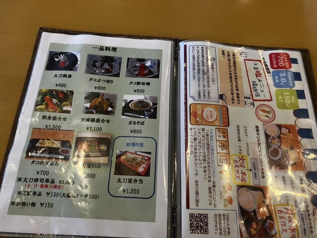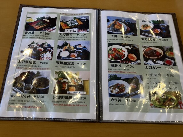 地元で採れた魚料理の店です。 店内にお土産コーナーもあり、食事の後に 海産物など買い物ができますよ!国東半島では人気の太刀魚を頂けるお店、目的の太刀重は蒲焼きの太刀魚の上に刻み海苔と大葉が乗っていて、鰻重よりも比較的あっさり頂けます!普段食べれないものを食べられるのは嬉しいです、また必ずいきます