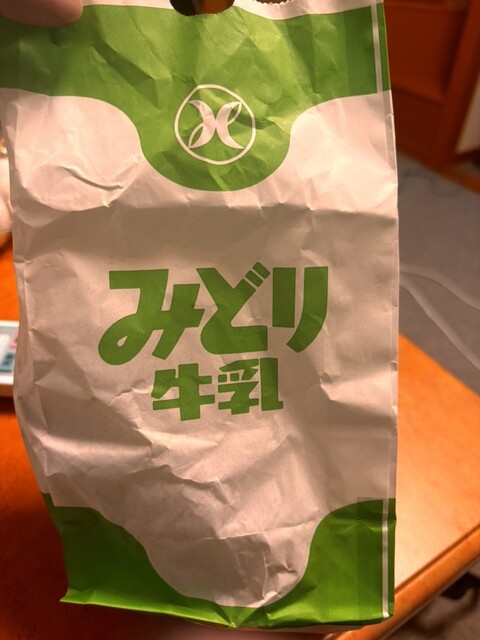 そして見たことがないみどり牛乳グッズまで店頭に並んでいました!工場内にあるので、駐車場はめちゃめちゃ広かったです。きなこ味の揚げパン。めちゃめちゃ美味しすぎました!