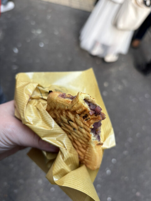 1個ずつ焼き上げる鯛焼きが目に入り、つぶあんを購入しました!皮はもちっとして柔らかめで、たっぷり詰まったあんこは甘すぎす、香ばしくて美味しかったです。おすすめです。