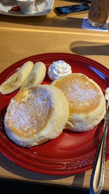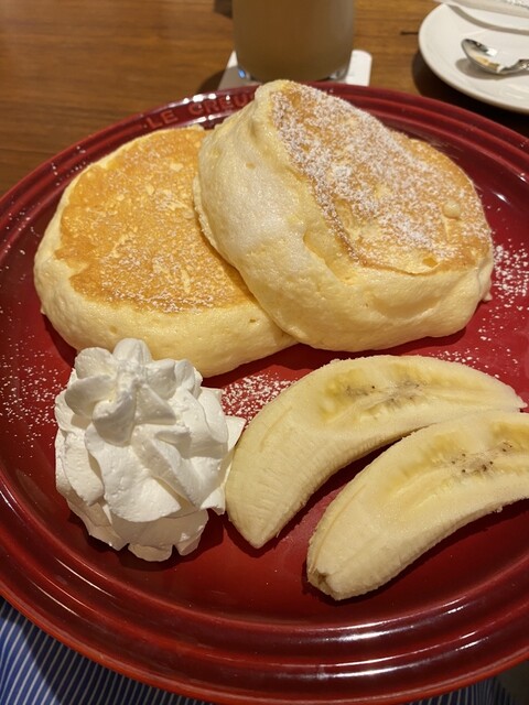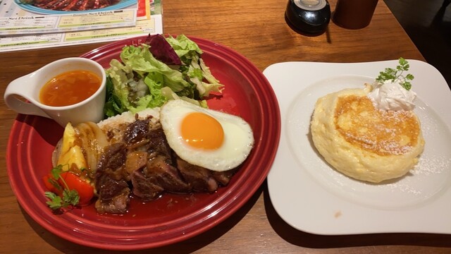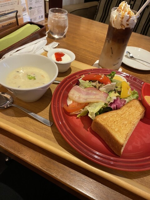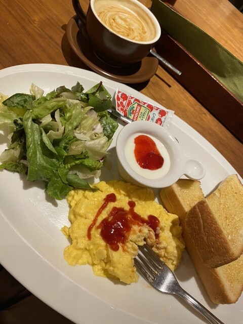 お客様と話していたら行きたくなり食べに来ました♪初めてランチメニューを食べました♪いつもモーニングだったので新鮮で朝より昼過ぎの方がゆったりしてゆっくり食べれました。サラダとお肉の量がちょうどよく、パンケーキははじめて冷たい方の奴を食べてみました。美味しかったです♪