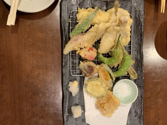 お刺身、鮎焼き、野菜の天ぷら、アジフライ、キスの天ぷら、なめろう、里芋の唐揚げ、岩ガキ、素材の味を存分に楽しむことができました!