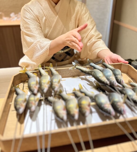 和良鮎と東白川鮎の食べ比べ。和良鮎は味が濃いと聞いたので、苦味も強くなるかと思いきやイヤな苦味がなく、風味が強く甘くて美味しかったです。