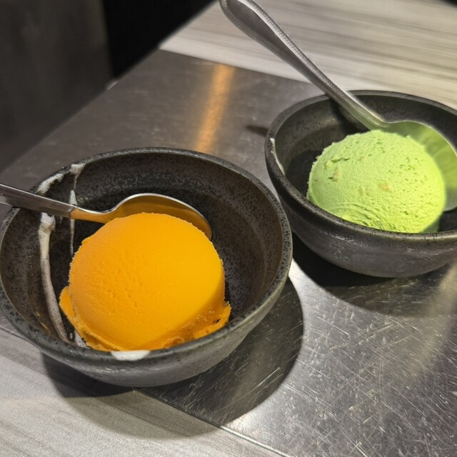 ポルチーニスープ、ポルチーニ茸がゴロゴロ入っていて濃厚で、パスタでもリゾットでもめちゃくちゃ合うこと間違いなし。シャトーブリアンはトリュフが香り甘めタレと合い上品な味でした。デザートは、ブルーシールアイス。さっぱりしていてデザートにピッタリでした!