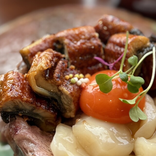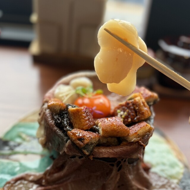和牛に鰻やホタテの海鮮が一緒に食べれて大満足の1杯でした。