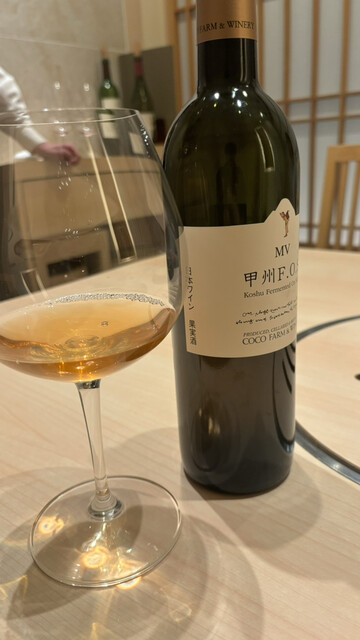 皮をそのまま熟成する事により皮の香りと苦味もありつつ深みがあるようなワインで酸味もある為食事にも合いやすいようなワインでした。