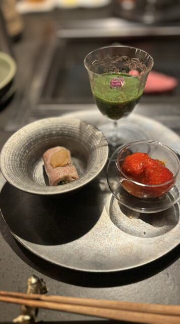 梨の甘味とフォアグラの上品な香りと白和の旨みが重なり合う贅沢な品でした。