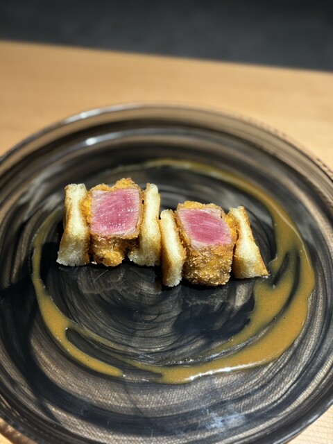 和牛ヒレの一皿はカツサンドでマスタードがいいアクセントで厚みがあるヒレカツサンドもサクサク食べれちゃいます!