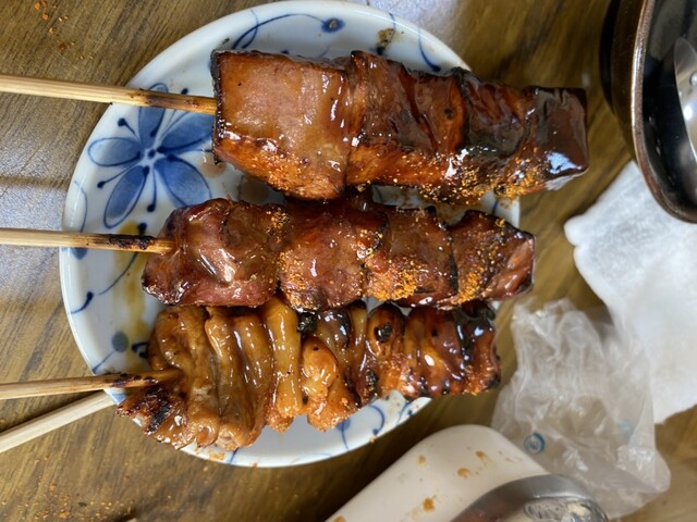 塩だ、タレだと騒いでいたが、口に入れた途端美味え〜 大人数でタン、カシラとか頼んだので、何を食ってんだろってなるのを防ぐのに櫛の握り部分が赤はハツ、黒カシラと塗られているのでご安心