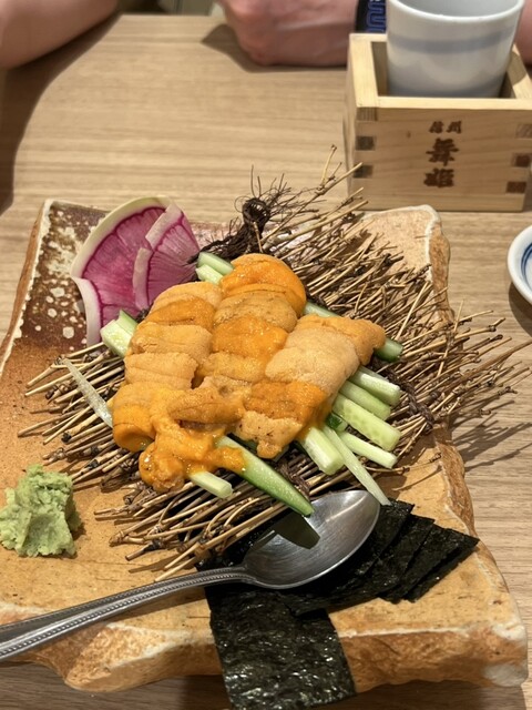 玉子焼きと山芋が早めに登場。これがまたビールに合う。気づけばビールを即おかわり。調子が出てきたところで、うにのおつまみを追加オーダー。これ、何度も頼んでいるがマジでおすすめ。