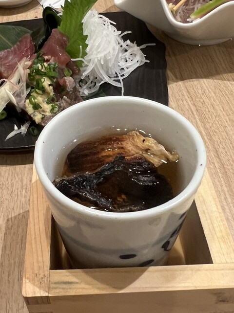 〆はふぐのひれ酒。ヒレの香ばしさが鼻を抜けて、ほっと一息。こういうのが昼飲みの醍醐味。