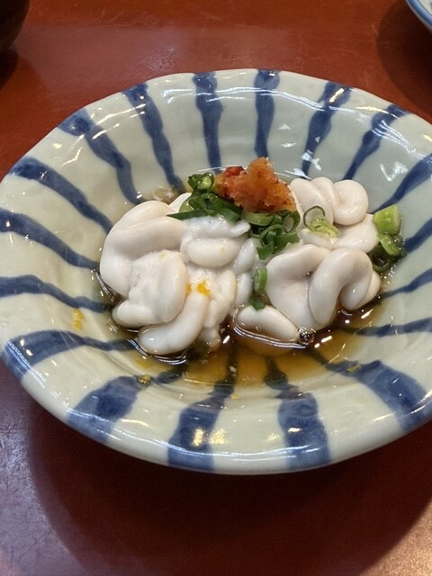 続いて、岩手産の生牡蠣、白子ポン酢、大間産あん肝、つぶ貝、自家製塩辛。