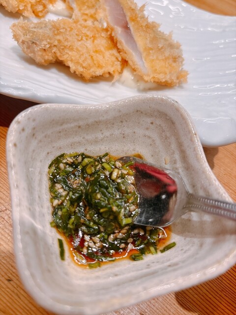 名物生アジフライ!中が生!タルタルとニラダレで食べます。これが飲めるアジフライ…