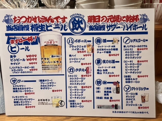 紛らわしい?ですが、外観は【倉敷商店街酒場】と看板がありますが、その付近に、【魚のとりやまさん】と載ってるので、クチコミする際は少し戸惑います笑