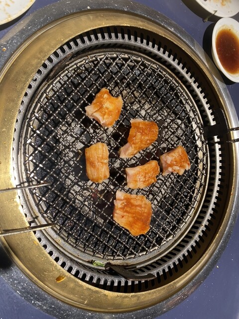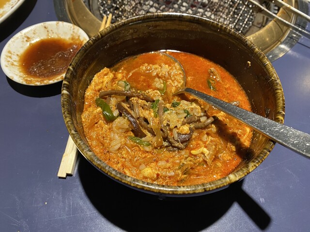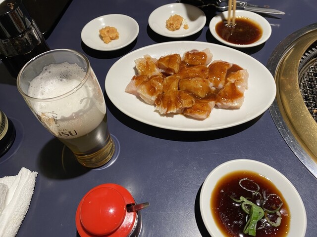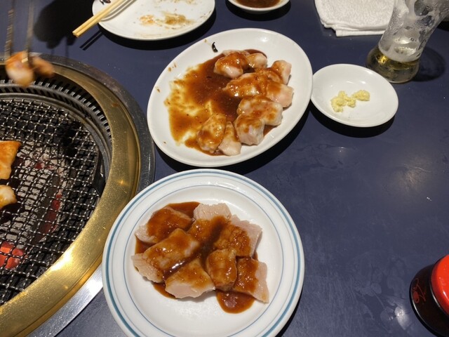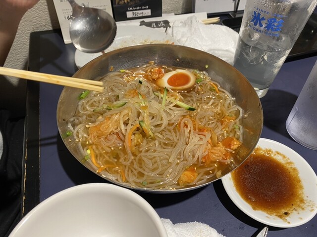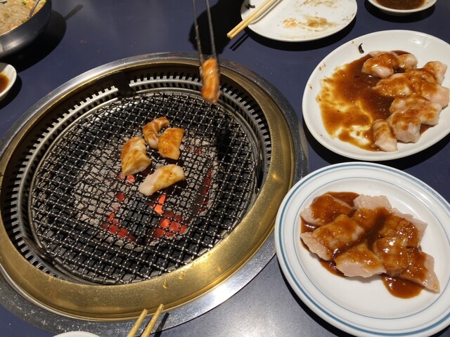 GWの最中に伺わせていただきました。やはり、それなりに混んでおり、お座敷は私どもで満卓。17:30〜の予約して良かったです。オーナーは不在。残念・・。さて、オーダーの第一弾は、キムチ盛り合わせ、タンげた、月波カルビ、上ミノ、月波サラダです。カルビは安定的に最高の味わい。で、予想外だったのが、妻は上ミノ、娘は月波サラダにどハマりしました。サラダと上ミノを追加オーダー。私はカルビ一択で追加オーダー、さらにマルちゃんも。酒も進み・・。やはり最後の締めは、ユッケジャンクッパをオーダー。妻はカルビクッパ、娘は冷麺。シェアしつつ食べました。どれも甲乙つけ難くうまい。やはり最高な食事でした。一点、残念だったのは、先客で居たグループが、まぁうるさい・・。肉類はあまり頼まずにお酒ばかりで大騒ぎ・・。居酒屋と勘違いしてるのかと思う位でした。その子供も座敷をウロチョロ・・。親はタバコを吸う為に頻繁に店外へ。もう少し落ちけと言いたいDQNが居たのが残念でした・・。それでも、また行きますよ、絶対に。ごちそうさまでした。
