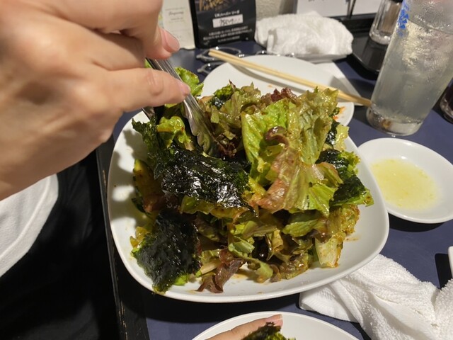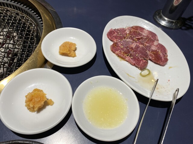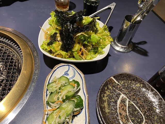 和牛月波カルビ×3、タンゲタ塩焼、月波サラダ(チョレギ)大、