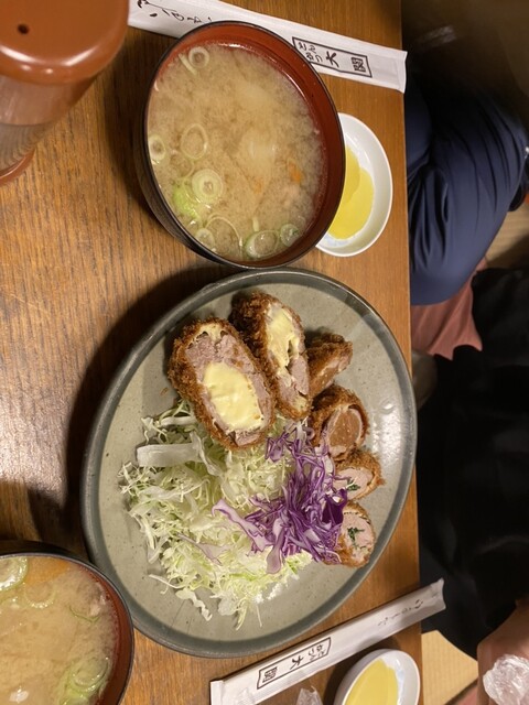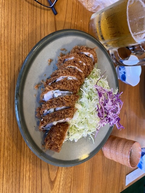 土曜日の夕方16時50分頃に行きました。夜の部は17時からですが、すでに待ちが多数おりました。今回は家族で行ったので2階のお座敷へ。まずはビールからで、最高の瞬間。さて、ご飯の注文ですが、私は三食ひれかつ定食(しそ・梅・チーズ)を注文しました。他の家族はチーズチキンかつ定食を・・私はいつも通り、きゃべつを先に食べておかわりを・・しそ・梅・チーズと色々な味を楽しめて大変美味しゅうございました。もちろんご飯もおかわりしてしまいました。他の家族はチーズチキンかつを頼みましたが、終盤は少し重さを感じたみたいです。最近はにんにく巻きや三色を頼んだので、次回は原点に立ち返りロースかつ定食かな?と思っております。ごちそうさまでした。
