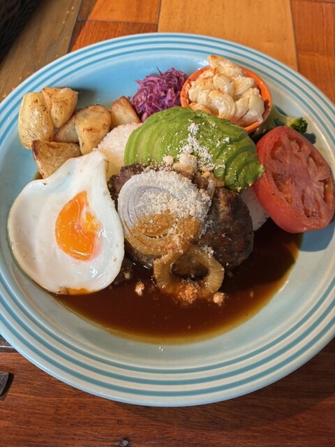 アボガドが食べたくて、ロコモコを注文。野菜たっぷりで後ろめたさ無し。