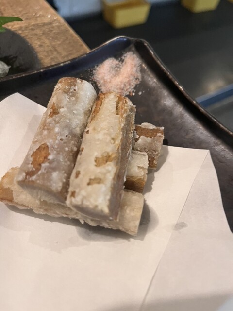 今回はあと、アスパラとエビの天ぷら、牛蒡の天ぷら、お刺身、タコの刺身、とにかくハズレがないです。