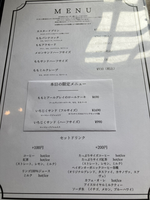 メニューを見て桃サンドかメロンサンドも食べたいけど、お腹が空くかなぁ?と思い