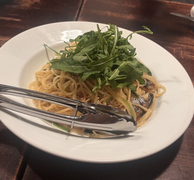 パスタはルッコラと秋刀魚という珍しい組み合わせのペペロンチーノで、季節を感じられる味わいでした!