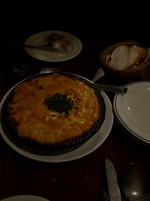 ・鯖とじゃがいものディップ(鯖にしっかり味がついてて、下のマッシュポテトと一緒にカリカリのバゲットの上に載せていただく。和な気分になりそうでした、鯖好きにはたまらない)