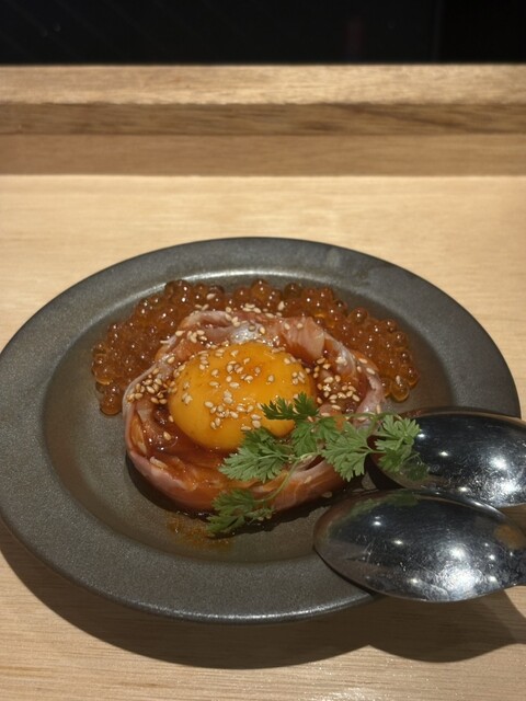 また、「自家製スモークサーモンユッケ」は、サーモンの脂身が絶妙に燻されており、ユッケのタレと相性抜群。さらに「燻製たまごのポテトサラダ」も燻製卵の風味が豊かで、ポテトサラダに新しい風を吹き込んでくれました。