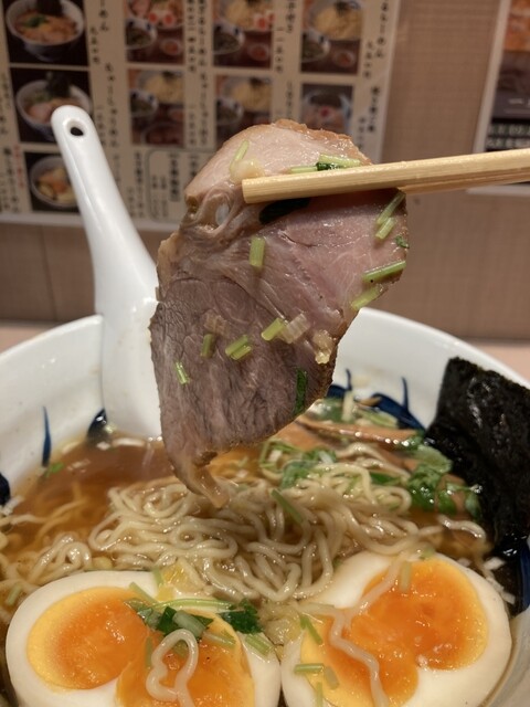 まずはスープを一口。鶏ガラと豚骨をベースに煮干しと鰹ぶしと野菜で摂ったスープは、コクの後にスッキリさが来る、とても美味しいスープです。このスープは、決して薄い訳ではなく、具材、麺を最後まで美味しく食べさせてくれるスープです♪