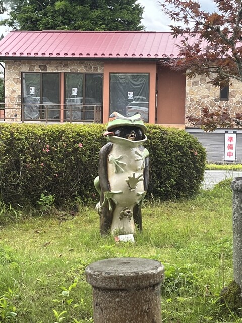 それにしてもあのカエルの着ぐるみを纏った狸の焼き物は、かなりシュールです。