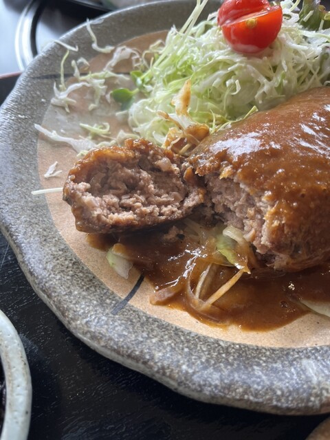 以前は箸を入れるとぶしゅわぁ〜っと肉汁が溢れ出るタイプでしたが、今はハンバーグの周りをコーティングして肉汁を閉じ込める感じですね。妻は以前の方がよかったと言いますが、わたしはこれが進化形だと評価しています。