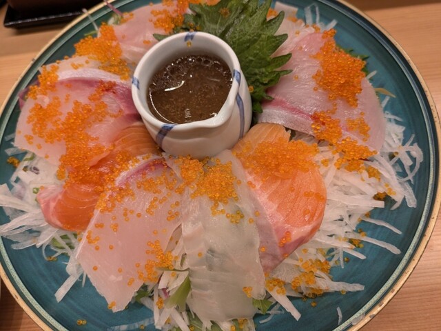 福井の地酒お試しセットが豪華。黒龍、梵、白龍のそろい踏み。3大珍味の汐うに、へしこと酒のあて。海鮮サラダ。越前おろしそば、永平寺胡麻豆腐。黒豆チーズが抜群でした。ソースかつで〆ました。福井の味を堪能しました。満足(笑)