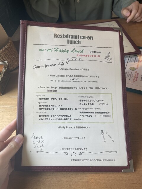 スペシャルランチコースなので、1人4,000円くらいしちゃいますが、どれ食べても美味しいのと、那須の食材をふんだんに使用した美味しい食事ができるので!