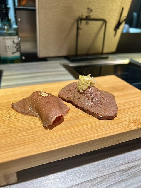 「丁寧に作られた肉寿司ってこんなに幸せなんだ」と感じられる二貫。