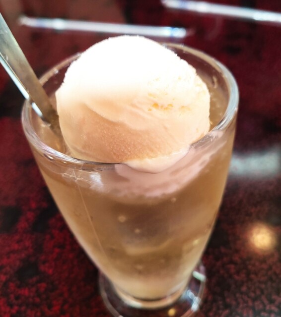 食後にドリンク兼デザートとしていつも頼むジンジャーエールフロートを頂きました。色々試しましたが、フロートにするならピリッとしたジンジャーが最適でした。(^_-)-☆