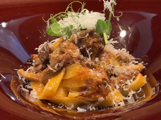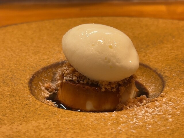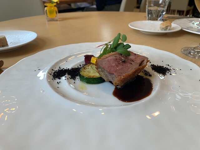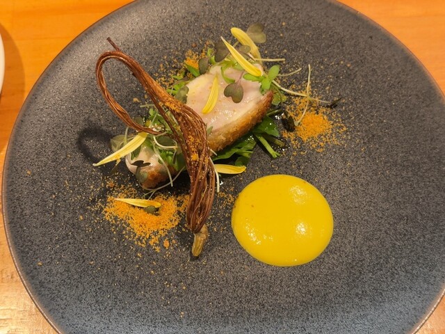 料理、焼き茄子のソテーの薫香、ビスクソースとの相性がよくて美味しかった!