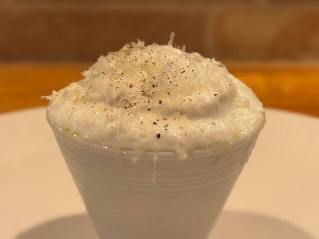 甘さ、香ばしさもあり、ポーチドエッグで濃厚さ、ブラックペッパーで締まりがよく、バランスが良くとても美味しかったです。