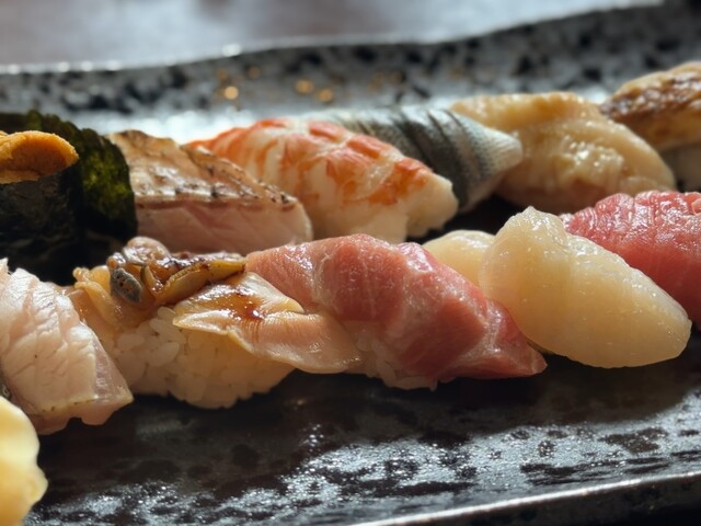カウンター以外にも小上がりやテーブル席がありますので、鮨以外は厨房で作っていますが、鮨に関してはおまかせと並行で注文が入れば寿司のランチセットを氏家大将が握って行くというスタイルです。