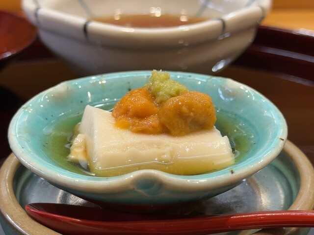先付けのトラフグの白子豆腐、濃厚で