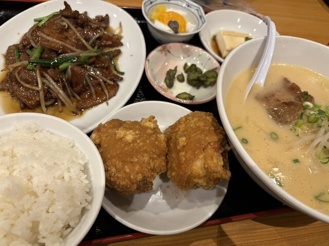 お気に入りのニラレバ定食!豚骨ラーメンで