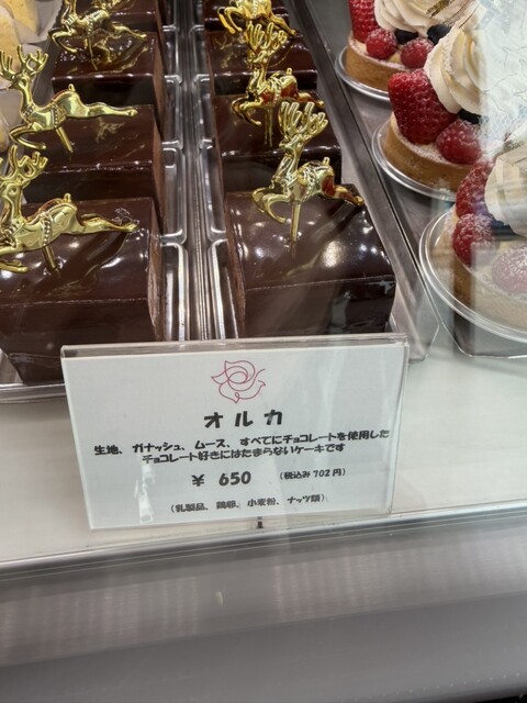 ピクシー660円、ショートケーキ600、オルカ650円、フルーツタルト???円。