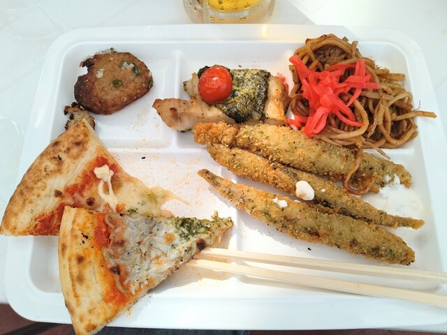 料理は、手作り感のあるメニューが豊富。おつまみの定番焼き鳥からお子さんも楽しめるポテトや唐揚げ、手作りピザ、大人向けの麻婆豆腐や鰹の藁焼き(たたき)、までバリエーションに富んでいて、選ぶ楽しさも味わえます。特に鰹のたたき(すぐ無くなりました笑)は、藁の香りがふんわりと漂い、ビールとの相性が抜群でした。麻婆豆腐は山椒が効き程よいピリ辛で、お酒が進む。意外にもご飯ものや麺類もクオリティが高く、単なる「景色だけ」のお店ではないと感じました。バイキングのすべてを撮りきれていないのですが、是非投稿画像をご覧ください。