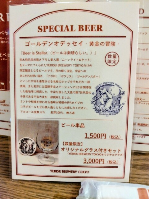 さらに別で頼んだ限定ビール「ゴールデンオデッセイ」は一段と個性的でした。香りは華やか系かと思いきや、飲み進めるうちにミントのような清涼感が現れて、まるでクラフトカクテルのよう。アルコール度数は高めでも、爽快さのおかげで最後まで飽きずに飲めました。