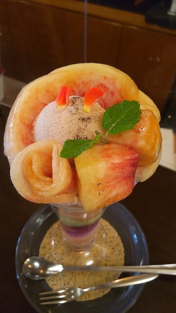 バラ香る桃のパフェ