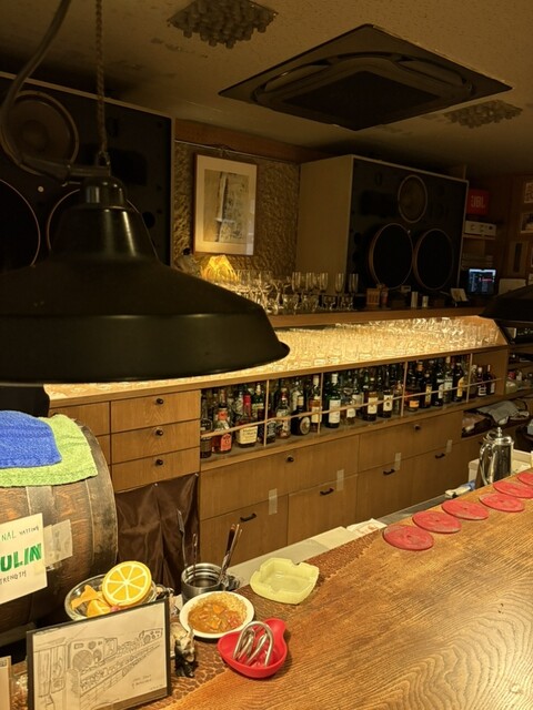 店内は落ち着いた雰囲気で、カウンターの奥には巨大なスピーカーがあり、そこから心地よいJAZZが流れてきます。