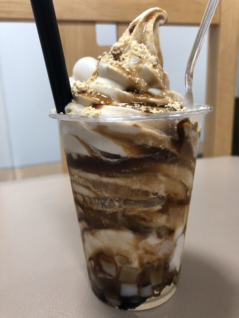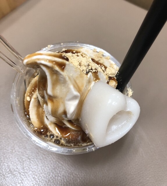 黒みつきな粉の豆乳ソフトクリームアフォガート♪ & もっちりレモンくず餅