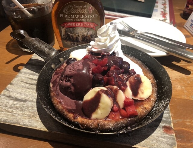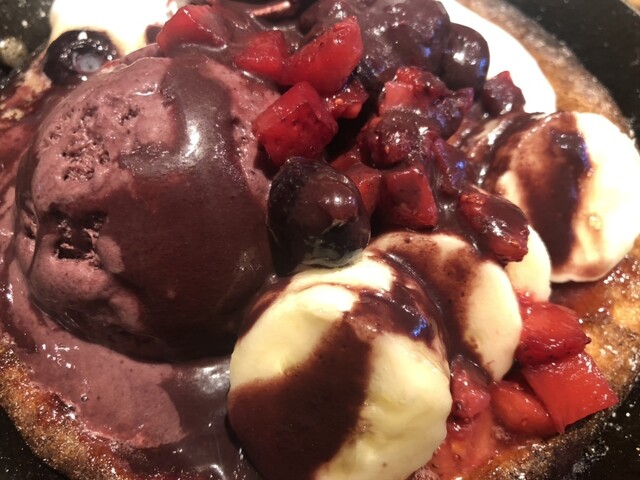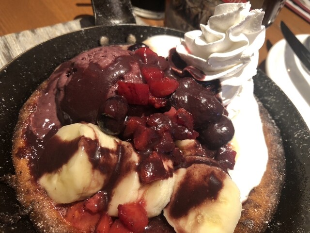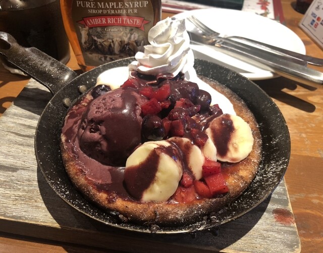 アサイーたっぷり〜スキレットでカリカリなパンケーキ♪
