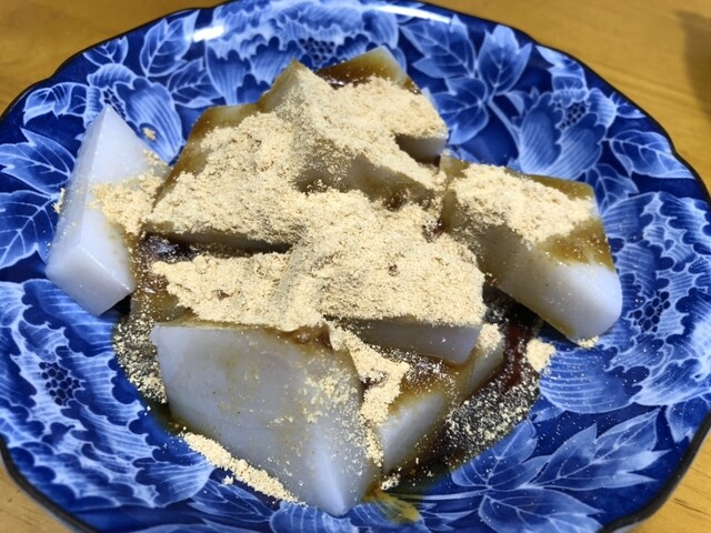 きな粉と黒蜜たっぷり、もっちりくず餅♪